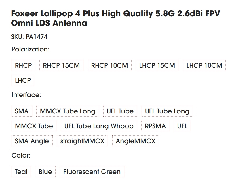 Антенна Foxeer Lollipop 4 Plus High Quality 5.8G 2.6dBi FPV Omni LDS Antenna RHCP MMCX Tube Long teal PA1474.