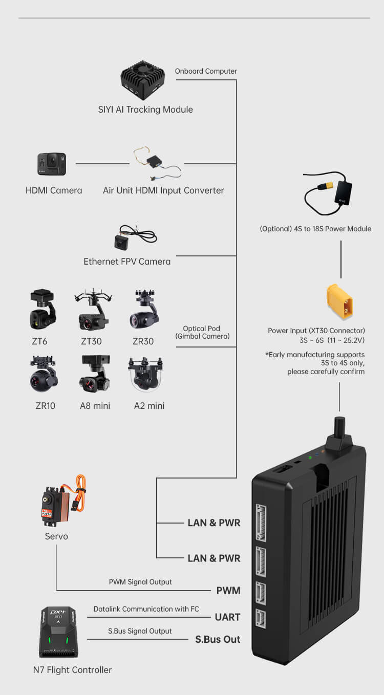 HM30 основан на независимой беспроводной технологии передачи изображения высокой четкости SIYI, которая представляет собой единое целое, интегрированное с дистанционным управлением, передачей данных и потоковым видео.
