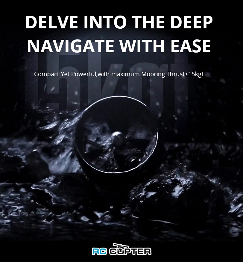 Высокая тяга: обеспечивает статическую тягу ≥15 кгс, что соответствует требованиям к двигательной установке средних и крупных ROV/AUV