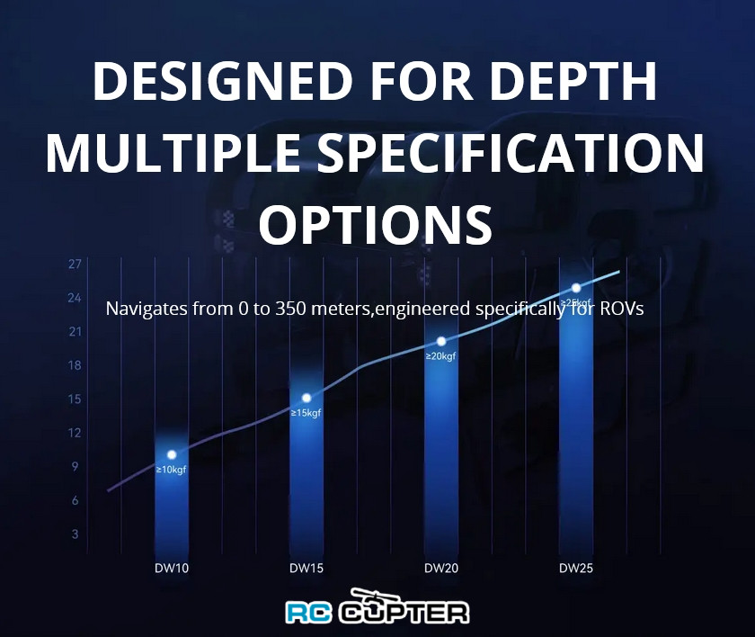 Работая при напряжении 48 В, он обеспечивает максимальную статическую тягу ≥15 кгс и рассчитан на надежную работу в подводных условиях на глубине до примерно 350 метров. Двигатель имеет корпус из алюминиевого сплава, изготовленный методом прецизионного литья, двухкамерную независимую герметичную конструкцию и динамическое уплотнение вала с низким коэффициентом трения. Благодаря сочетанию герметизирующего материала с высокой теплопроводностью и эффективного водяного охлаждения для отвода тепла, DW15 обеспечивает стабильную и удобную в обслуживании работу даже при высоком гидростатическом давлении и в сложных условиях выполнения задач.