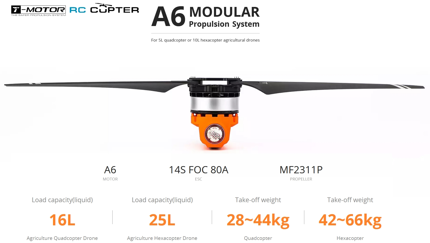 A6 (Motor)+FOC 80A (ESC)+ MF2311P (Propellers) |