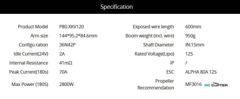 P80 | KV100/KV120 | ALPHA 80A 12S | MF3016 | P30*10, G30*10.5 | FLAME 80A 12S, FLAME 100A 14S |