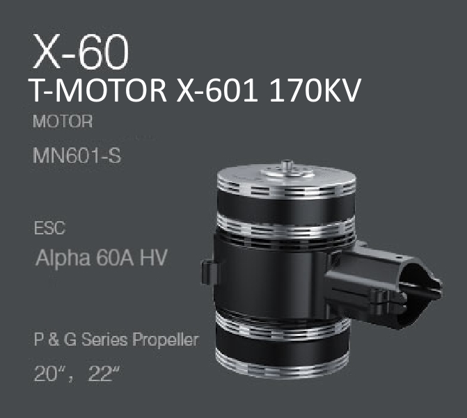 Соосная винтомоторная группа T-Motor X-601 KV170 12S (Integrated Propulsion System) в составе моторов MN601-S KV170 (2 шт) + регуляторов двигателя ESC Alpha 60A HV 6-12S (2 шт) + крепления мотора.
