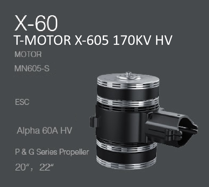 Соосная винтомоторная группа T-Motor X-605 KV170 12S (Integrated Propulsion System) в составе моторов MN605-S KV170 (2 шт) + регуляторов двигателя ESC Alpha 60A HV 6-12S (2 шт) + крепления мотора.