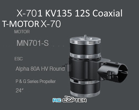 Соосная винтомоторная группа T-Motor X-701 KV135 12S (Integrated Propulsion System) в составе моторов MN701-S KV135 (2 шт) + регуляторов двигателя ESC Alpha 80A HV 12S (2 шт) + крепления мотора.
