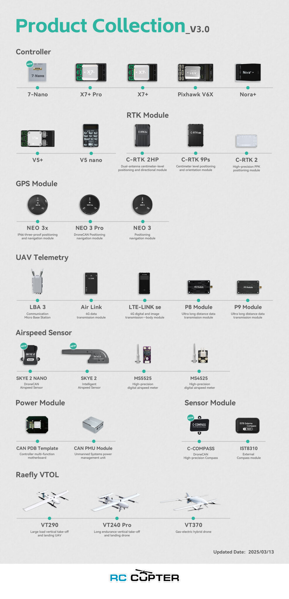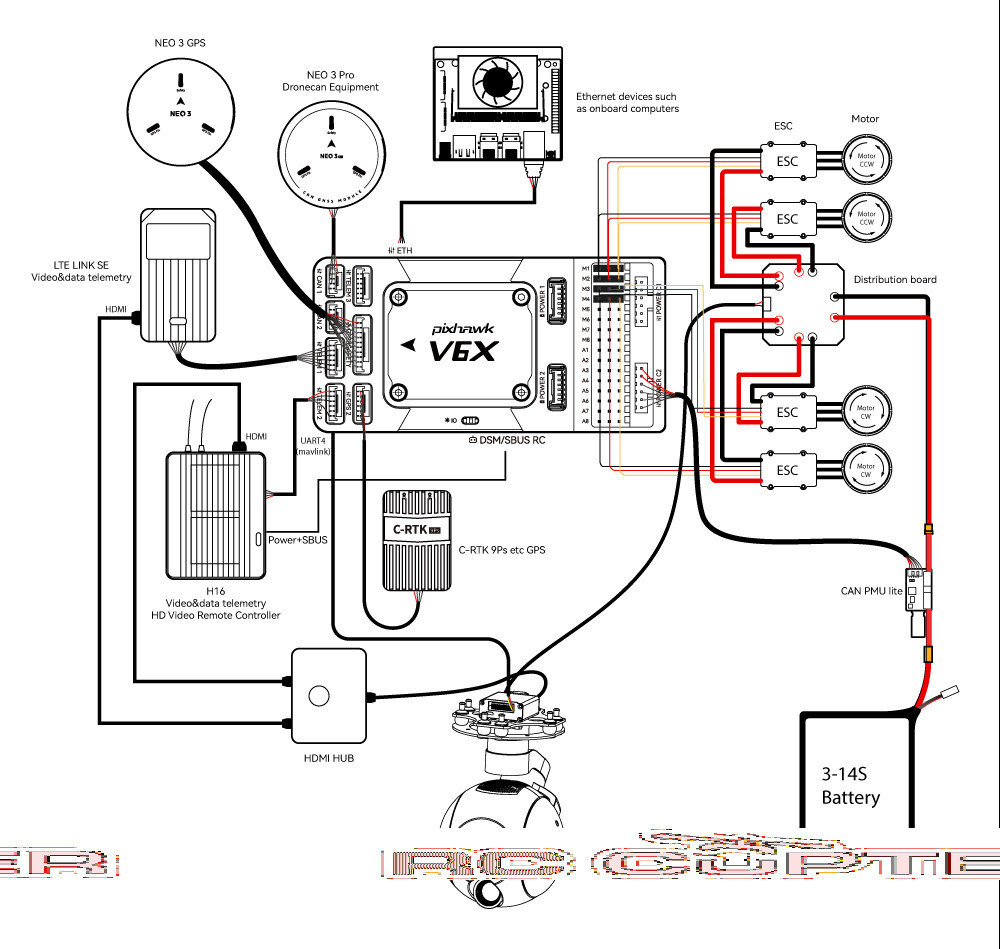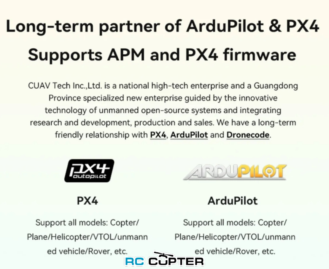Pixhawk V6X — это новое поколение Pixhawk, разработанное CUAV и PX4; оно создано на основе стандарта Pixhawk FMU v6x и обеспечивает максимальную безопасность и стабильность; в нем используется арифметический блок с двойной точностью H7 и сопроцессор Cortex-M3, независимая шина и источник питания. Три резервных ИМУ, технология заводской предварительной калибровки температуры ИМУ, конструкция с двумя резервными барометрами, всесторонняя гарантия безопасности эксплуатации и богатые возможности расширения; встроенный 100M Ethernet PHY, может связываться с бортовым компьютером (воздушным компьютером), волоконно-оптической инерциальной навигацией, высококачественными камерами для съемки и картографирования и другим промышленным оборудованием, установленным на беспилотных системах, для высокоскоростной связи, что отвечает потребностям высококачественных приложений.