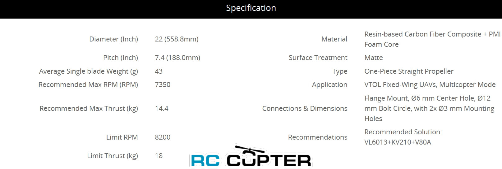| Диаметр | 22 (558.8 мм) | Материал | Resin-based Carbon Fiber Composite + PMI Foam Core (Композит из углеродного волокна на основе смолы + пенопластовая сердцевина PMI) | |
