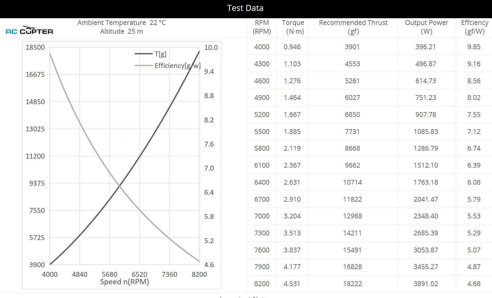 Recommended Thrust тяга (gf) |