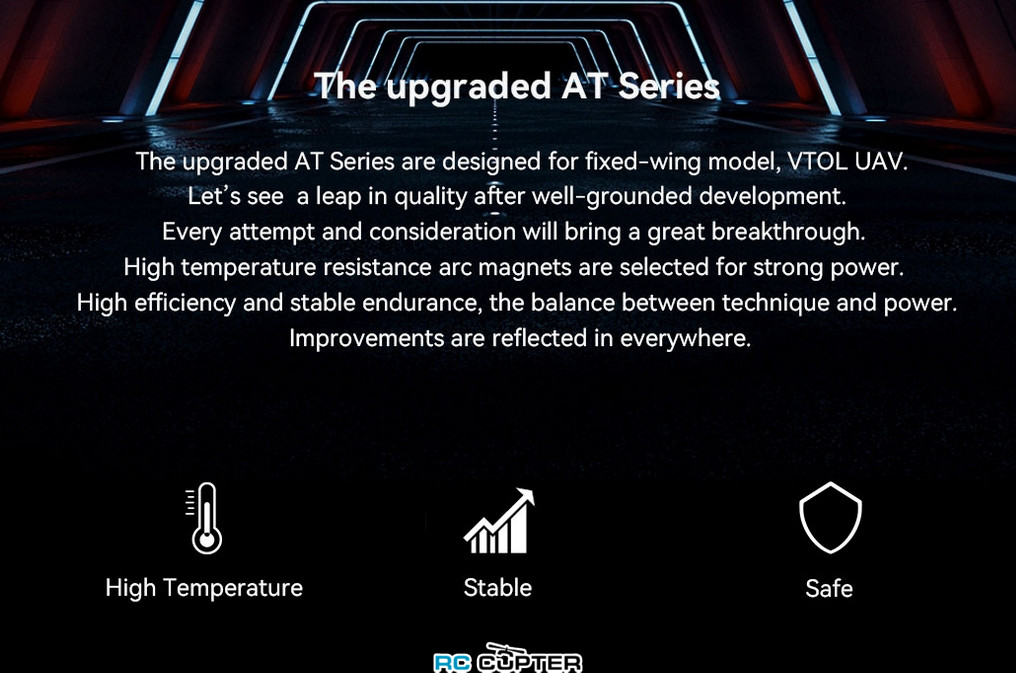 В двигателях серии AT используются современные материалы, применяемые в промышленности. Проволока, покрытая высокотемпературной эмалью ручной работы, обладает превосходными огнеупорными и антивозрастными свойствами, что значительно продлевает срок службы двигателя. Изогнутые магниты с точным регулированием допусков и рациональным расположением магнитов для оптимальной магнитной цепи двигателя помогают улучшить производительность двигателя. Подшипники Cutom импортируются из Японии для улучшения качества двигателя и продления срока его службы, что обеспечивает плавный и стабильный полет и увеличивает время полета.