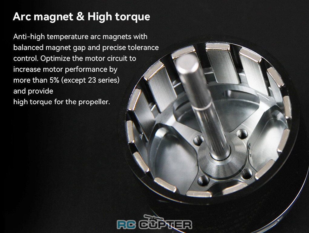 Он может работать с литий-полимерными батареями 3-4s с максимальной мощностью 900 Вт. Рекомендуется использовать с пропеллером T-MOTOR T12*6/T13*6.5 и ESC T-MOTOR AT55A-75A.