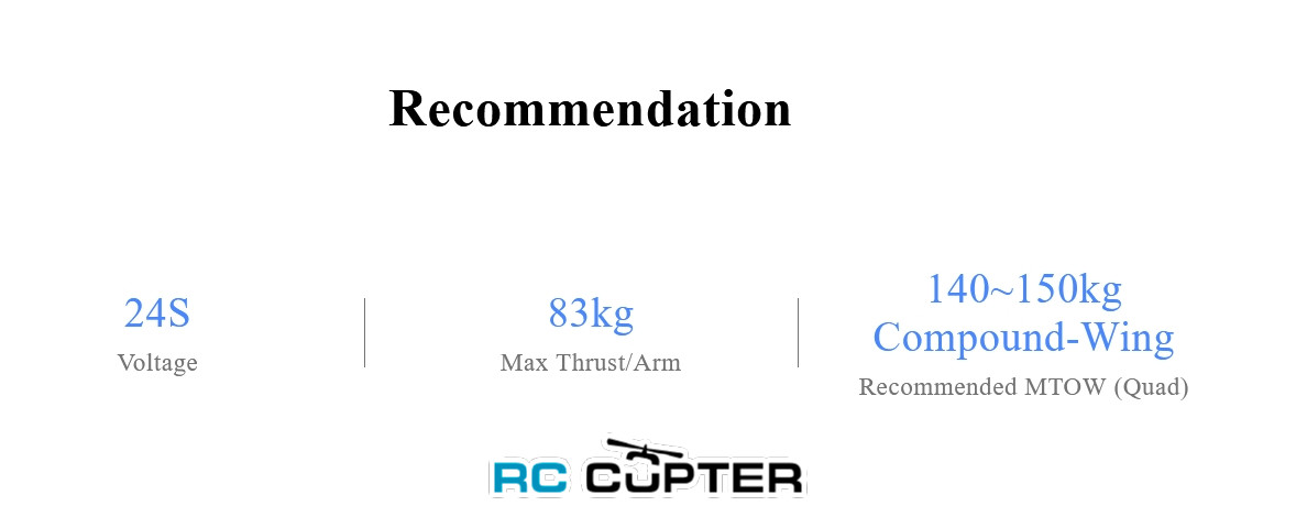 | Напряжение (LiPo) | 24S | Ток холостого хода (15 В) | 4.8A |