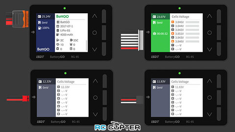 Тестер iSDT BG-8S может работать с аккумуляторами, использующими технологию BattGO. Суть технологии в том, что в аккумулятор устанавливается специальный чип, который собирает информацию о работе аккумулятора. А тестер может считывать эту информацию через разъем XT60i. В разъем между силовыми проводами добавлен еще один телеметрийный контакт.