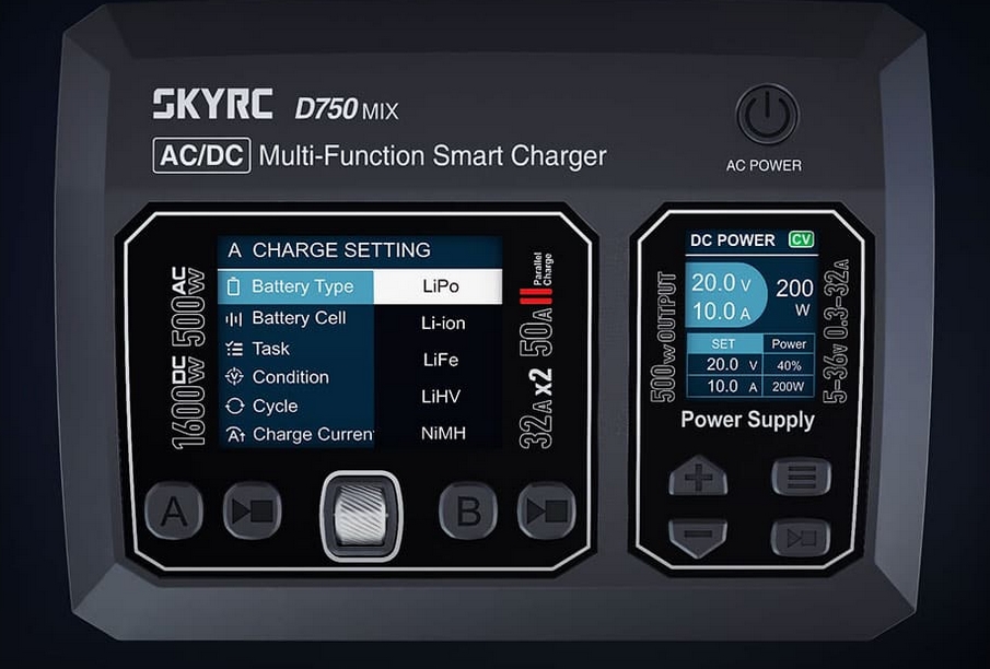 LiPo/LiFe/LiIon/LiHV: Balance Charge, Charge, Storage, Discharge, Parallel Charge, Reverse Discharge