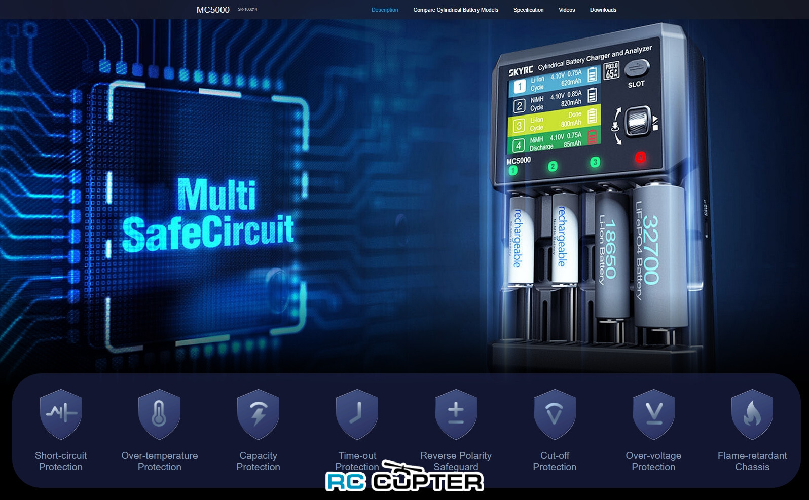 - Зарядное устройство SkyRC MC5000 для цилиндрических батарей (Li/Na/Ni) x4, 80W (AC), 5A (SK-100214) - 1 шт